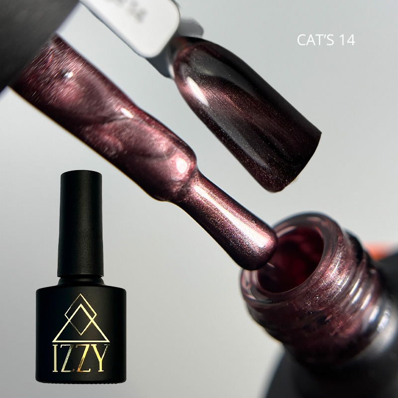 IZZY Cat’s Eye 14 — коричневий гель-лак із магнітними частинками з фектом "котяче око".