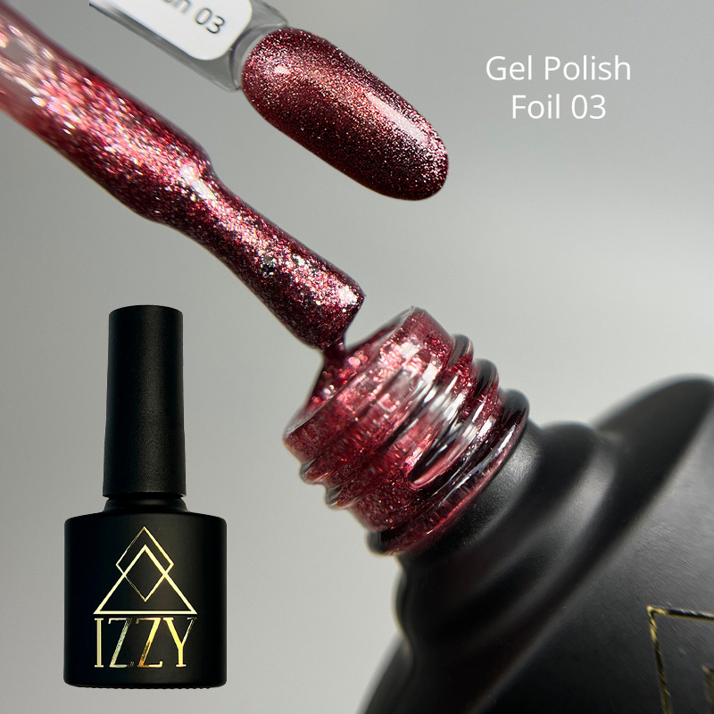 IZZY Foil №03 — червоний гель-лак з фольгованим блиском, 10 мл