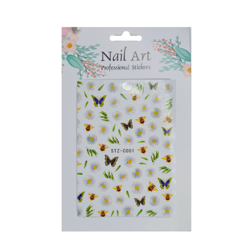 Наклейка для манікюру "Ромашки і комахи"