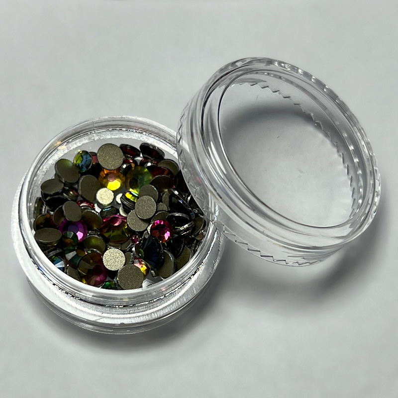 Стрази для дизайну нігтів з бензиновим переливом . Наносити на ніготь за допомогою воскового олівця для каменів.