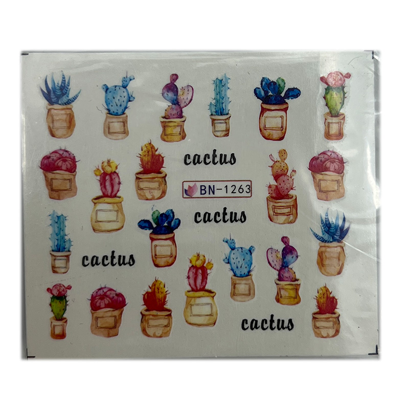 Слайдер-дизайн Кактуси 10 – наклейки на нігті на водній основі
